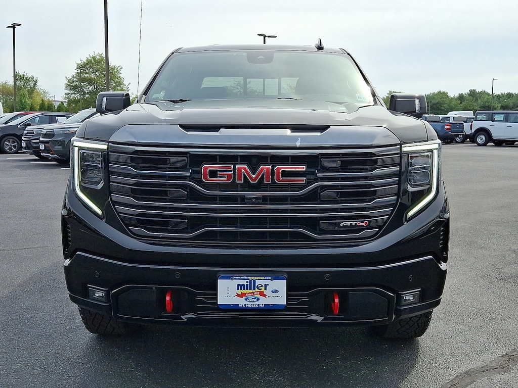 2024 GMC Sierra 1500 AT4 Onyx Black *One Owner* *Clean Vehicle History Report* *Bluetooth Hands-Free* *Non Smoker* *Local Trade Not a Prior Rental Vehicle* 10-Speed Automatic 4WD Jet Black With Kalahari Accents Leather 120-Volt Bed Mounted Power Outlet 120-Volt Interior Power Outlet 2 Charge/Data USB Ports Inside Center Console 2 Type-C Charge-Only Rear USB Ports 2 USB Ports 220 Amp Alternator AT4 Preferred Package Auto-Locking Rear Differential Black Chrome Header & Grille Insert Bars Color-Keyed Carpeting Floor Covering Deep-Tinted Glass Electric Rear-Window Defogger Floor-Mounted Center Console Front Prem Floor Liners w/Removable Carpet Insert Front Rain-Sensing Wipers GMC Connected Access Capable HD Surround Vision Heated 2nd Row Outboard Seats Heated Driver & Front Outboard Passenger Seating Heavy-Duty Air Filter Hill Descent Control Hitch Guidance Hitch View In-Vehicle Trailering System App Integrated Trailer Brake Controller Keyless Open & Start LED Cargo Area Lighting Navigation System OnStar & GMC Connected Services Capable Perimeter Lighting Power Door Locks Power Front Passenger Windows w/Express Up/Down Power Front Windows w/Driver Express Up/Down Power Rake & Telescoping Steering Column Power Rear Windows w/Express Down Power Sliding Rear Window w/Rear Defogger Power Sunroof Preferred Equipment Group 4SB Premium Bose 7-Speaker Sound System Push Button Start Rear Cross Traffic Braking Rear Pedestrian Detection Rear Prem Floor Liners w/Removable Carpet Insert Rear Wheelhouse Liners Red Recovery Hooks Remote Vehicle Starter System SiriusXM w/360L Spray-On Pickup Bedliner w/AT4 Logo Steering Wheel Audio Controls Theft Deterrent System (Unauthorized Entry) Trailer Camera Provisions Trailer Side Blind Zone Alert Trailering Package Ultrasonic Front & Rear Park Assist Universal Home Remote Ventilated Driver & Front Passenger Seats Wi-Fi Hotspot Capable Wireless Charging.